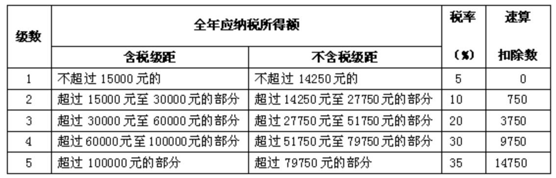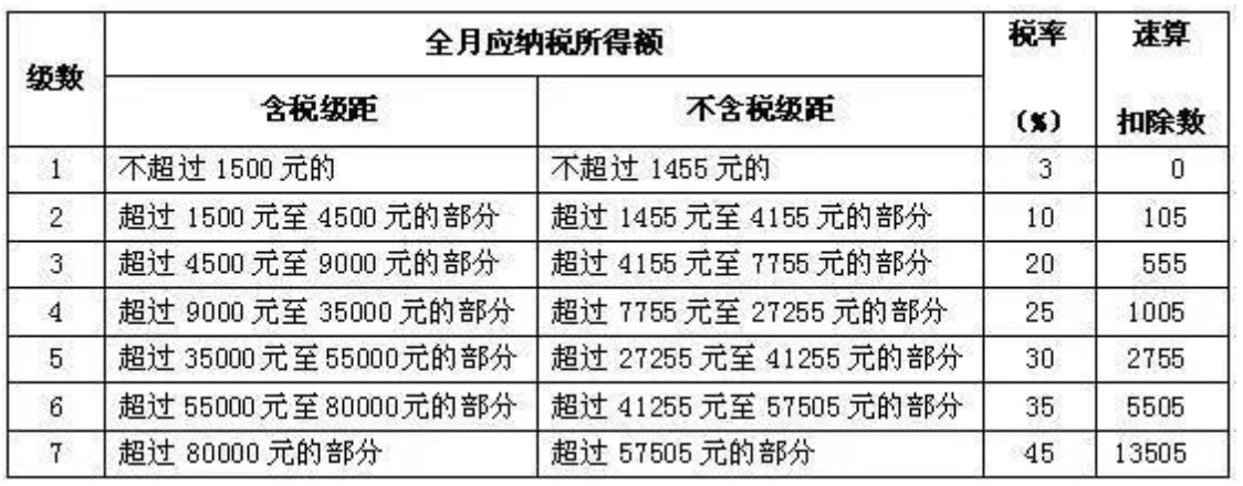本表为工资、薪金所得适用。所称全月应纳税所得额,是指每月收入额减除费用三千五百元以及附加减除费用后的余额。